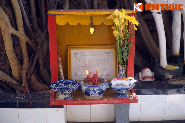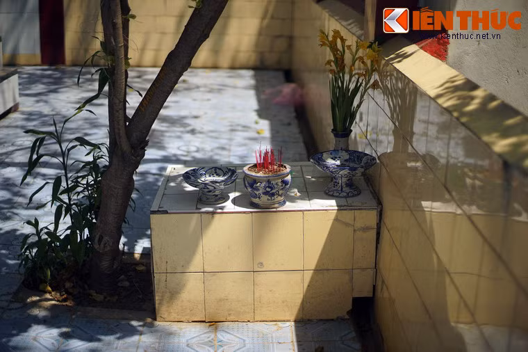 Mặt trước mộ có bàn thờ khá lớn, xung quanh có nhiều bàn thờ nhỏ. Các bàn thờ luôn có người hương khói thường xuyên.