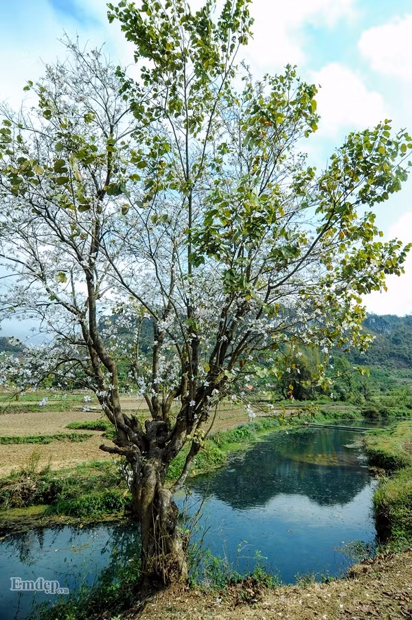 Mỗi độ bình minh, nắng lên xua tan màn sương trắng mờ để lộ ra những cánh hoa rung rinh trong gió. Từng thảm hoa trắng lô xô khắp từng ngọn đồi, quả núi bao quanh thung lũng. Chúng trải dài từ cao xuống thấp như những ngọn thác tung bọt nước, đôi chỗ, ban quấn quýt với nhau như dải lụa mềm vắt hững hờ ngang sườn núi.