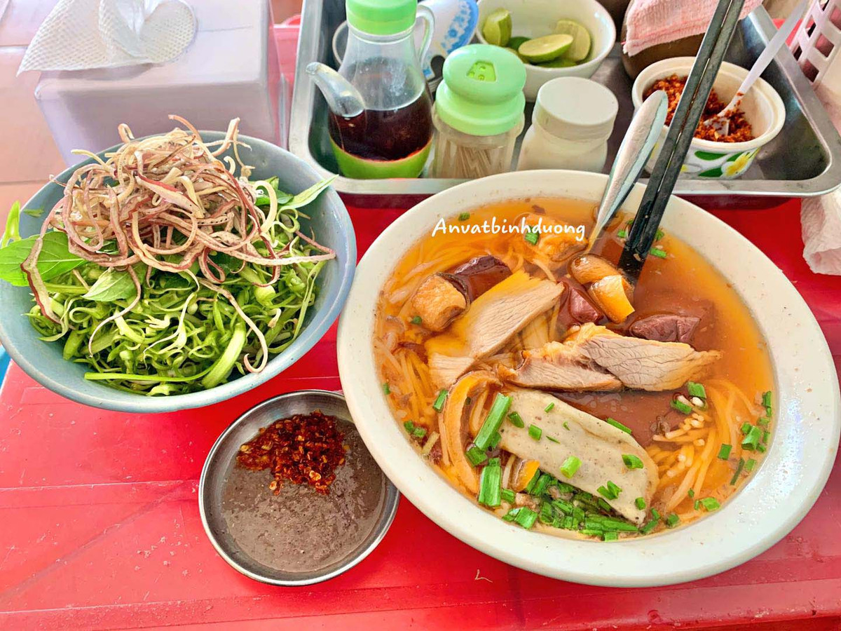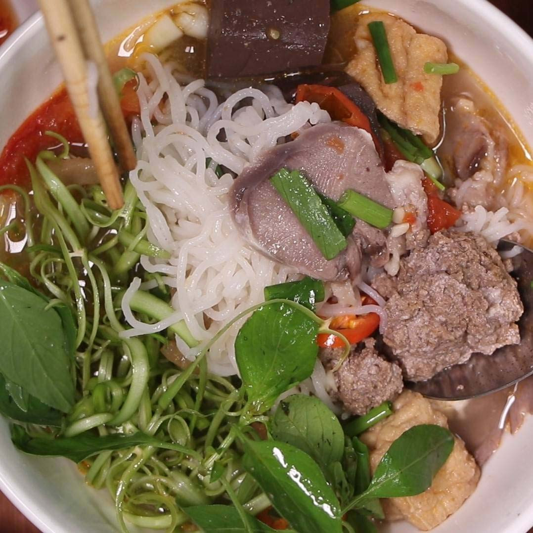 Bún rạm thoạt nhìn trông như bún riêu với lớp thịt rạm hấp dẫn trên mặt. (Ảnh: cukhoaiiiiiiii)