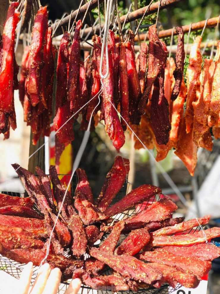 Chị Trương Thị Bảo (38 tuổi, chủ một cơ sở sản xuất đặc sản bò giàng, heo gác bếp) cho biết, dịp này, mỗi ngày cơ sở của chị sử dụng 400kg thịt để chế biến, tăng gần 3 lần so với ngày thường do nhu cầu dịp tết tăng cao.
