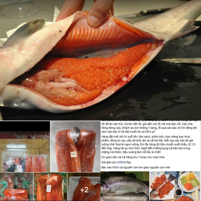 Chia sẻ với PV, chị Kim một người rao bán cá hồi cho biết: “Chưa bao giờ cá hồi Sa Pa lại rẻ đến như vậy, tôi có người bác ở Sa Pa nuôi nhiều cá hồi nhưng giờ không bán được nên tôi đành vào các hội nhóm đăng bài bán để “giải cứu cá hồi” giúp bác. Giá bán ra cũng rẻ hơn nhiều so với siêu thị ngày thường là 290.000 đồng/1kg”.