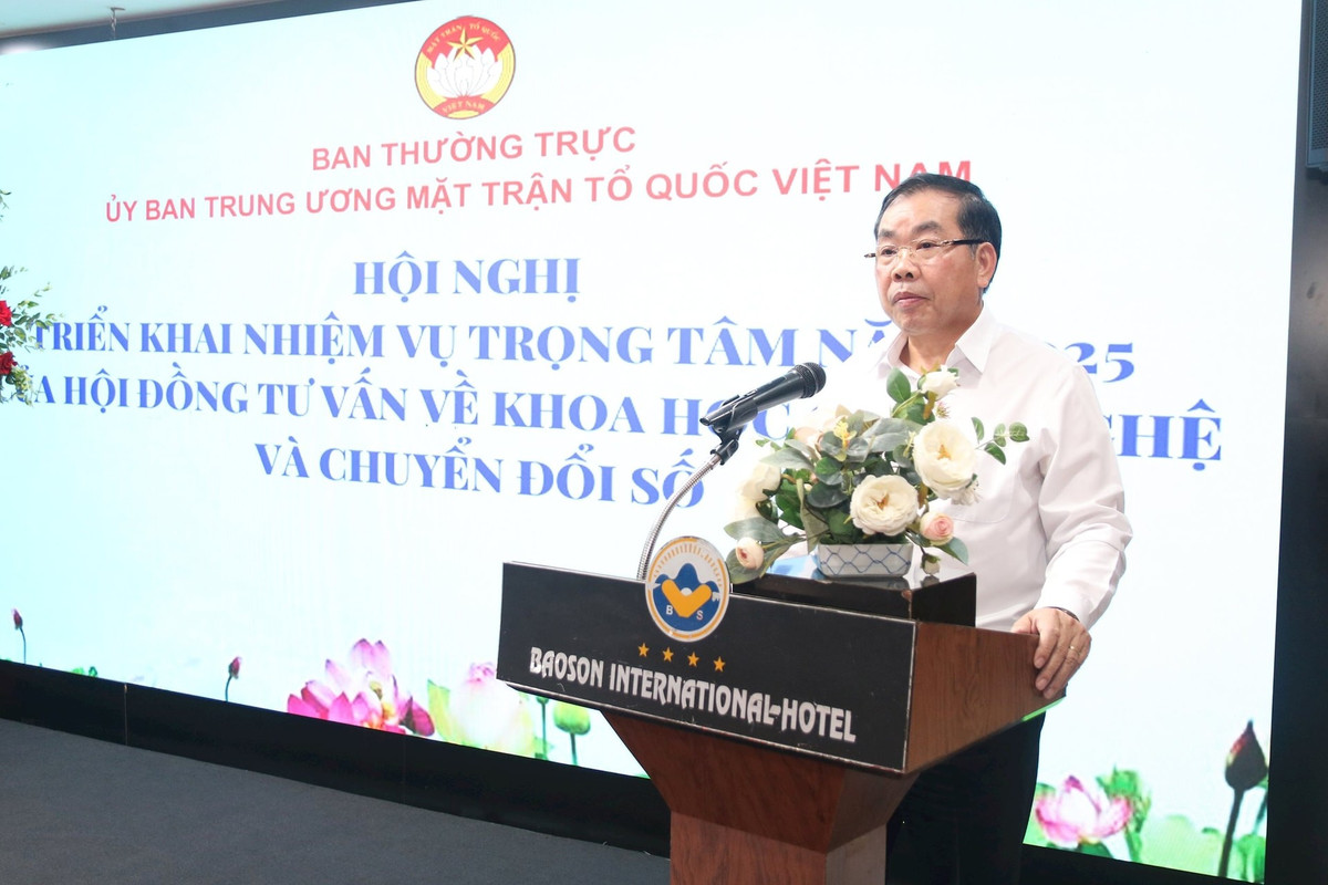 Ngày 6/6, tại Hà Nội, Phó Chủ tịch UBTƯ MTTQ Việt Nam Hoàng Công Thủy chủ trì Hội nghị triển khai nhiệm vụ trọng tâm năm 2025 của Hội đồng tư vấn về Khoa học công nghệ và chuyển đổi số.