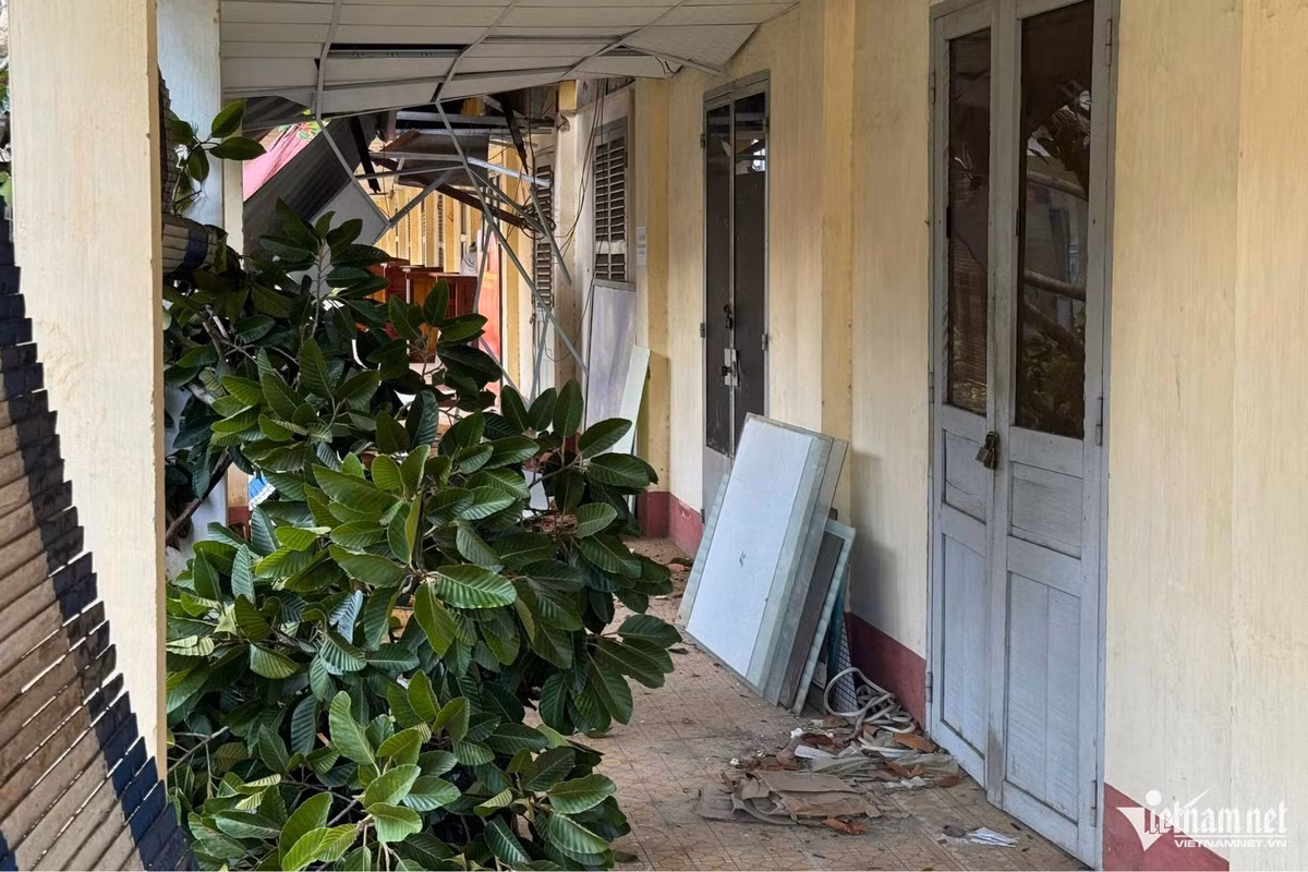 Nhiều mảng tường, la phông trong bệnh viện cũng bị đổ sập.
