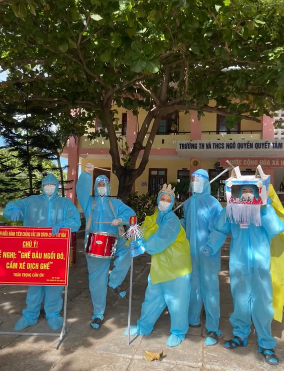 Mời quý độc giả xem video: Tiếng trống múa lân rộn ràng vang lên trong khu cách ly, đội TNV gây chú ý vì màn hóa trang 'lạ' - Nguồn: TikTok