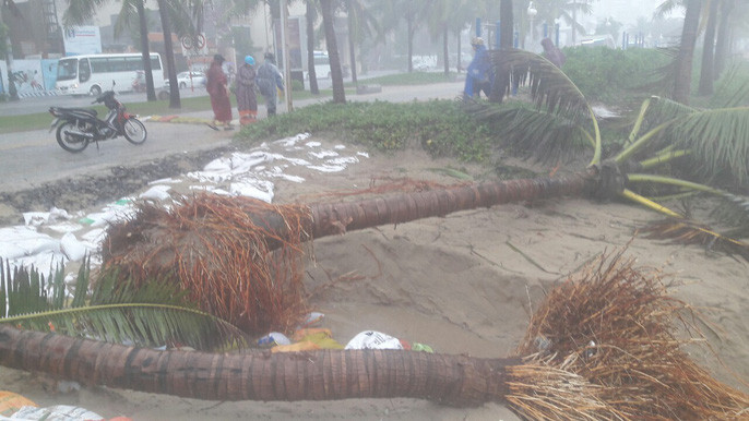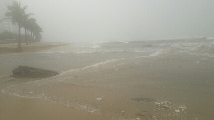 Gần 1 km bờ biển Mỹ Khê thuộc địa bàn quận Ngũ Hành Sơn và Sơn Trà (TP Đà Nẵng) đang tiếp tục bị sạt lở và chưa có dấu hiệu dừng lại do mưa lớn kéo dài.