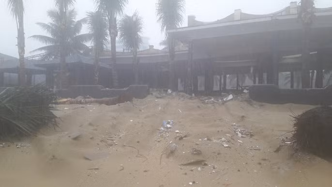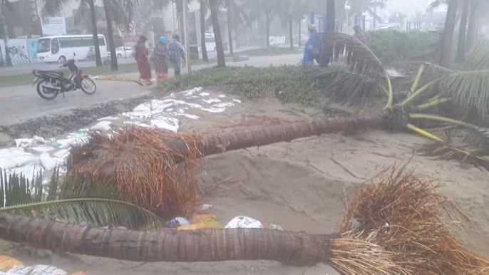 Hàng chục cây dừa nằm sâu trong bờ biển cũng bị sóng lớn đánh tới tấp và trôi tuột ra biển. Khu vực 2 nhà hàng, quán Bar nằm cạnh cống xả Mỹ An hiện đang bị sạt lở nặng phần móng. Nhiều đồ đạc, bàn ghế, phần mái cùng hệ thống bậc tam cấp dẫn ra bờ biển cũng bị cuốn trôi ra biển.