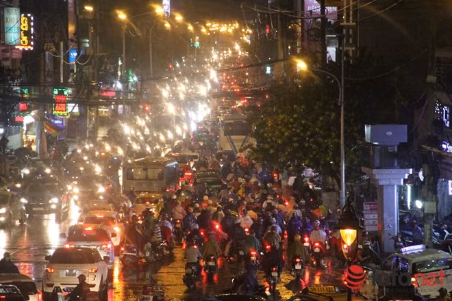 Mưa đúng vào giờ tan tầm nơi việc ùn tắc càng nghiêm trọng. Người dân phải khổ sở, chật vật mất nhiều thời gian về tới nhà