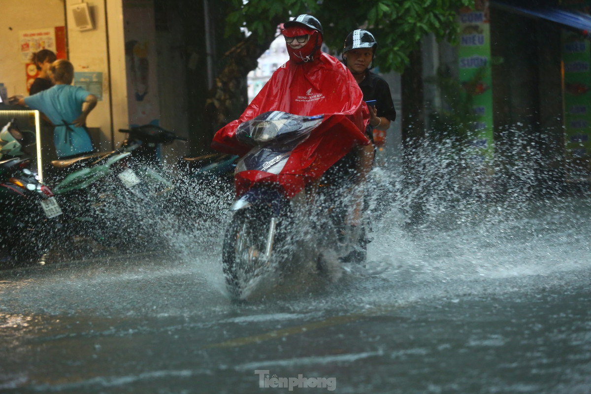 Hình ảnh trên phố Hoàng Văn Thái (quận Thanh Xuân, Hà Nội) chỉ sau 15 phút mưa lớn.
