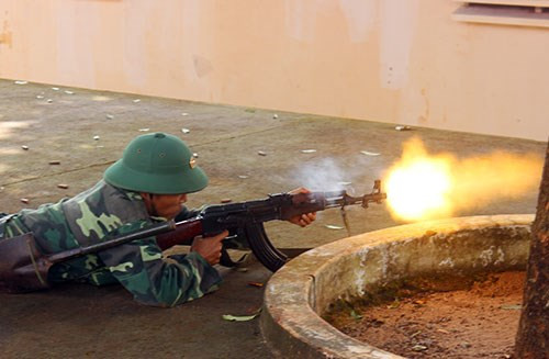 Lực lượng thực binh áp sát mục tiêu đánh chiếm và bảo vệ thành công cơ sở sản xuất.