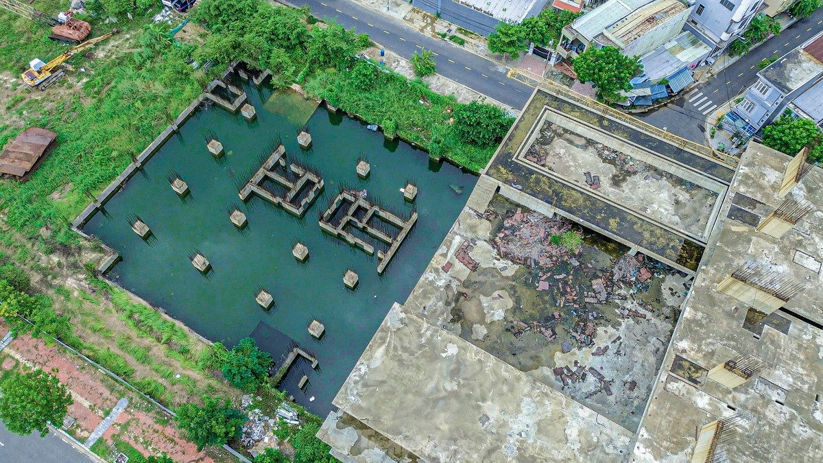 Theo người dân sống xung quanh khu vực này cho biết, công trình này đã dừng thi công nhiều năm qua khiến cây cỏ mọc um tùm. Một phần móng xây dựng dang dở trở thành hồ chứa nước mưa lớn, tạo môi trường thuận lợi cho ruồi, muỗi sinh sôi gây ô nhiễm, mất mỹ quan.