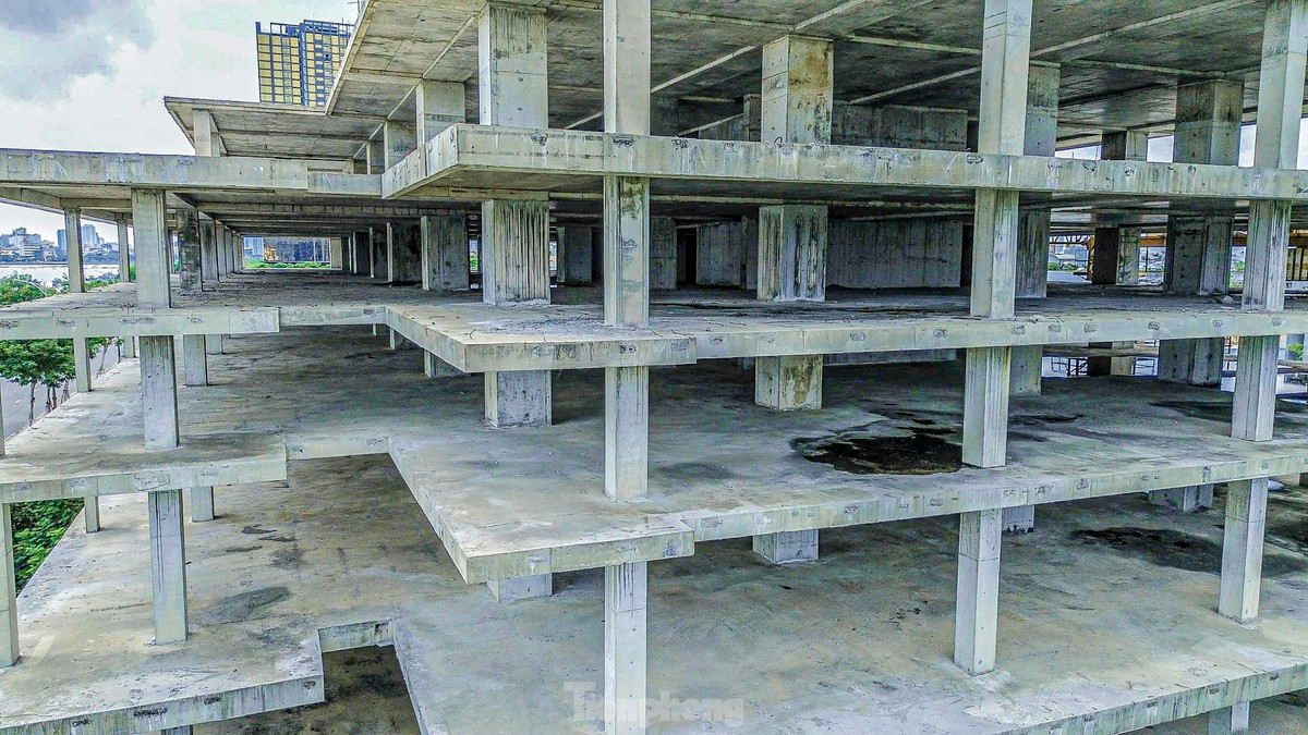 Nhiều hạng mục bên trong công trình Khu phức hợp trung tâm thương mại và căn hộ cao cấp Han Riverside hiện dang dở, sắt gỉ sét.