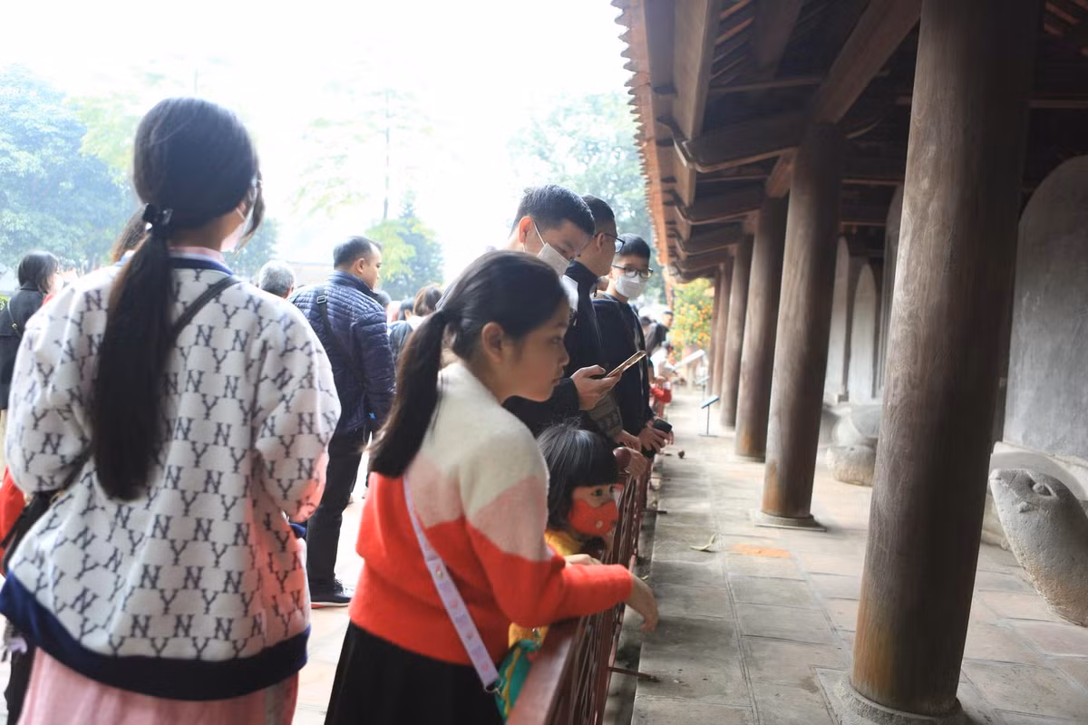 Dù khu vực bán vé mở 4 cửa để "giảm nhiệt" đường vào, nhưng người dân vẫn phải xếp hàng chờ đợi khá lâu. Nhiều du khách quốc tế cũng tới đây tham quan, du lịch, trải nghiệm không khí Tết cổ truyền Việt Nam.