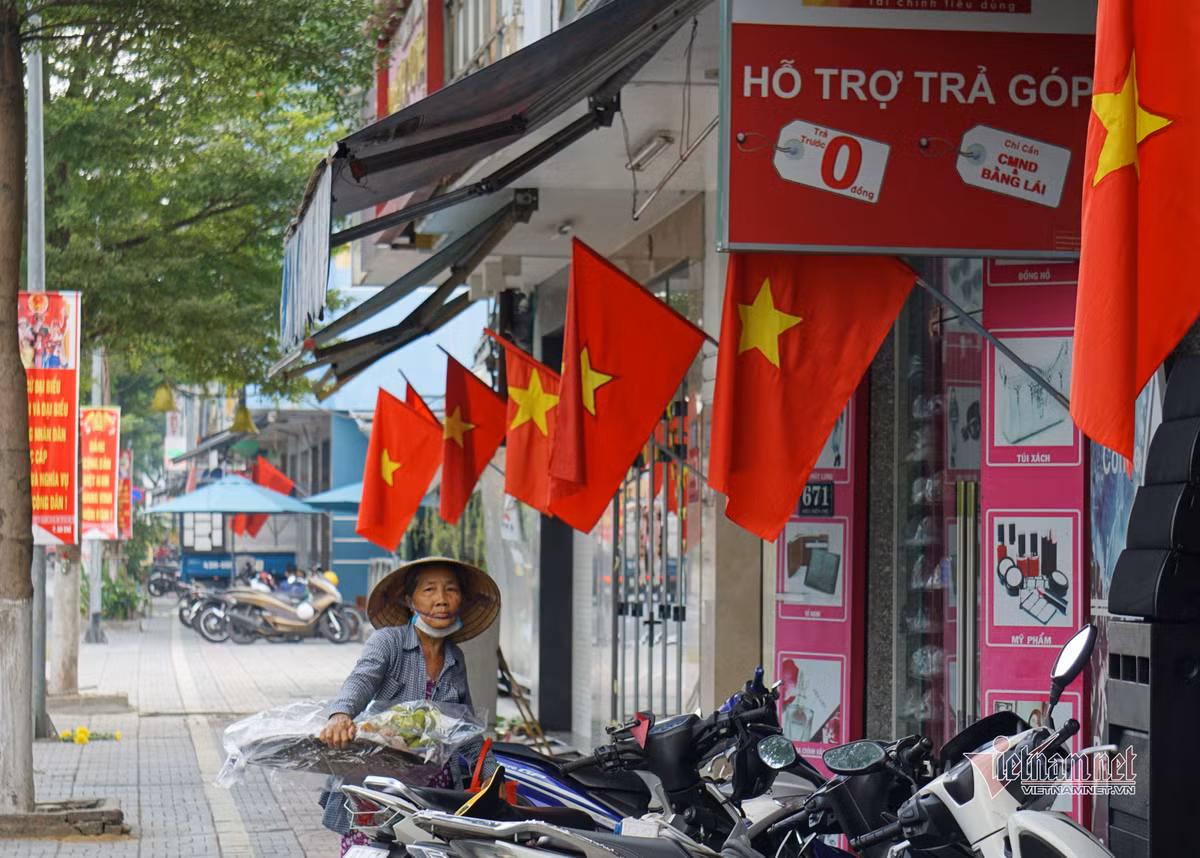 Người dân tại đường Điện Biên Phủ treo cờ Tổ quốc trước nhà để kỷ niệm những tháng ngày lịch sử của dân tộc.