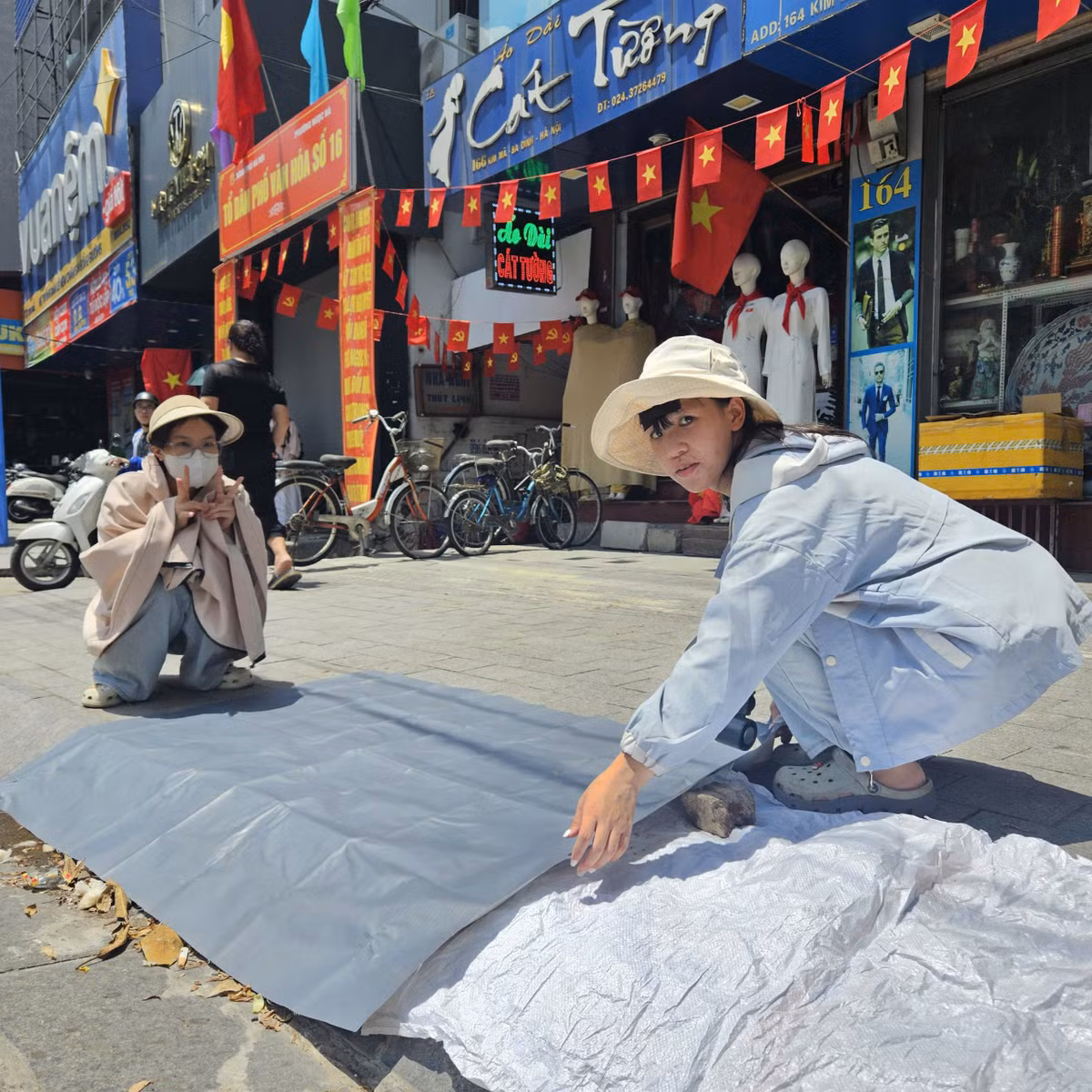 Tại phố Kim Mã (Hà Nội), ngay từ rất sớm, nhiều người dân từ khắp nơi đã đến để "nhận chỗ" xem buổi tổng hợp luyện diễu binh, diễu hành lần 2.