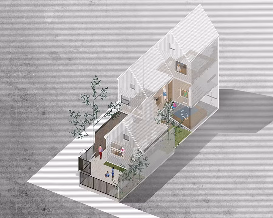 Công trình nằm tại góc ngã ba của cụm dân cư nhỏ ở Q.Gò Vấp, TP.HCM. Khoảng lùi do chỉ giới xây dựng làm cho khu đất có hình dáng tương đối lạ.