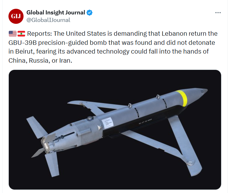 Đánh giá của Mỹ hiện cho rằng chỉ cần Hezbollah hoặc các cố vấn Iran tiếp cận quả bom GBU-39B cũng có thể giúp họ đẩy nhanh nghiên cứu về các hệ thống đối phó vũ khí dẫn đường chính xác, có nguy cơ làm suy yếu hàng thập kỷ đầu tư của Mỹ vào khả năng sống còn của vũ khí dẫn đường GPS.