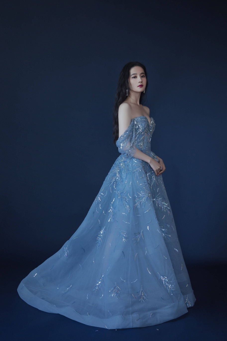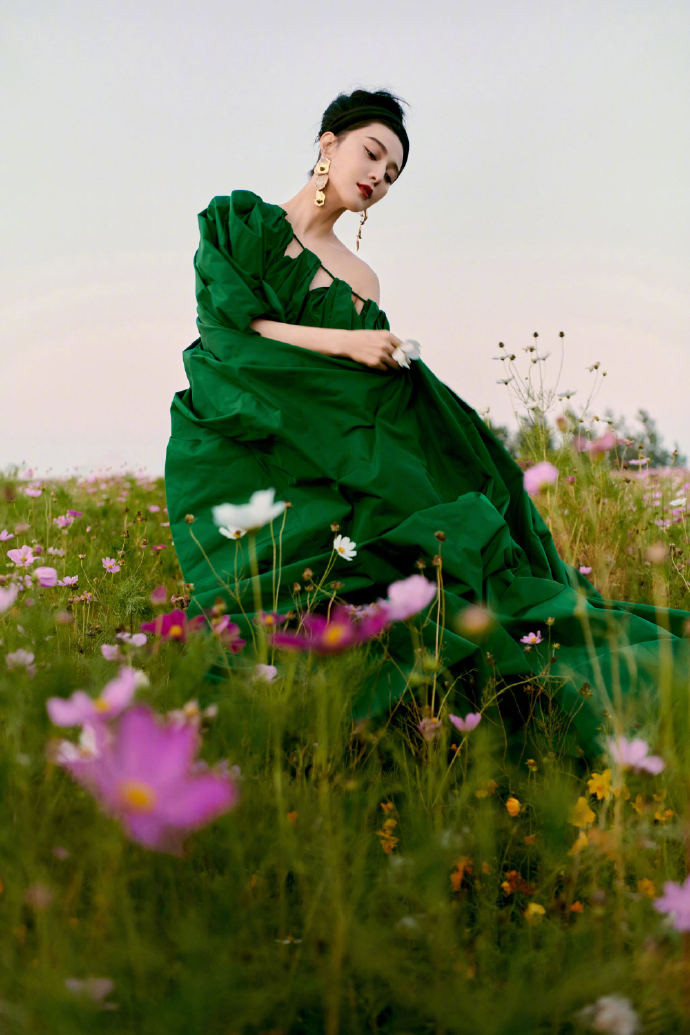 Ngay trước đó, người đẹp Hoa ngữ cũng khiến cộng đồng mạng sôi sùng sục với chiếc váy xanh nhung quý phái, càng làm nổi bật nước da như sứ.