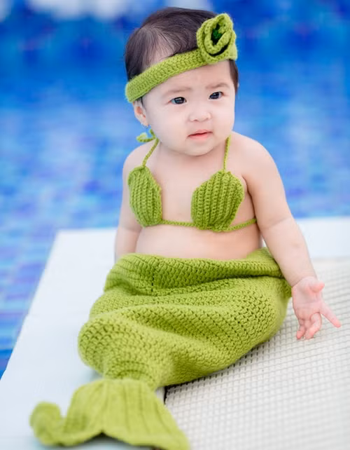 Cô bé 7 tháng tuổi và nụ cười tươi rói trong trang phục Mỹ nhân ngư khiến bao người bật cười vì độ đáng yêu không thể cưỡng.