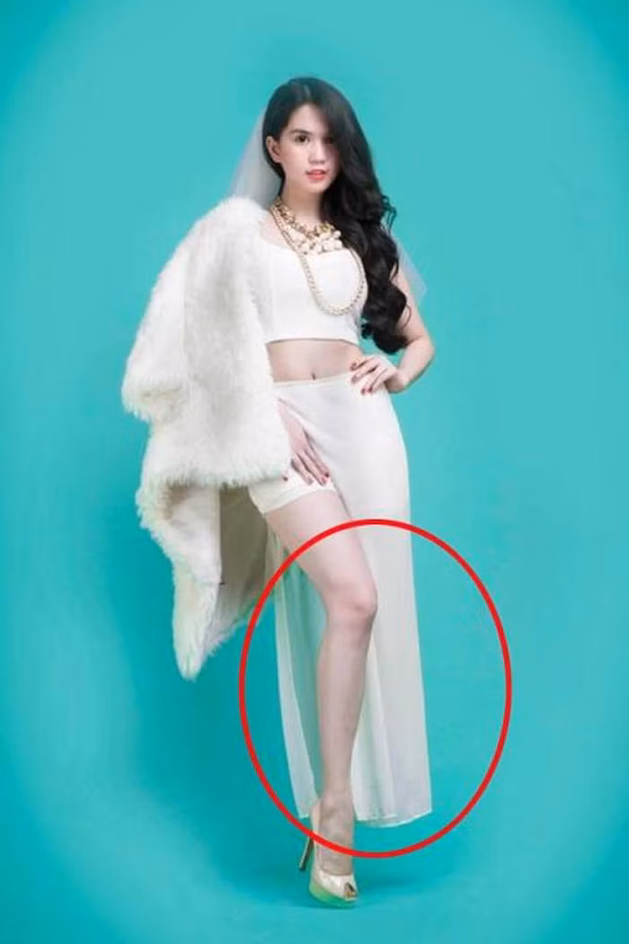 Không chỉ có Đông Nhi, bức ảnh của “Nữ hoàng nội y” Ngọc Trinh thậm chí còn tệ hơn khi một bên chân biến mất khó hiểu, không biết đang “chơi trốn tìm” ở phương trời nào.