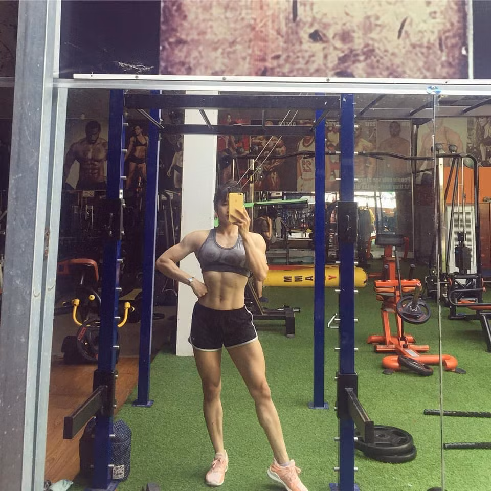 có thân hình toàn cơ là cơ như vậy có lẽ cô gái này đã bỏ nhiều thời gian và công sức tập luyện.