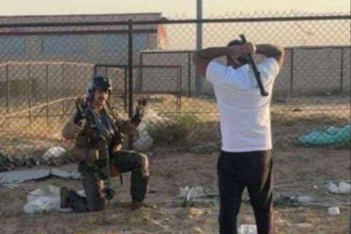 Phi công Mỹ giơ hai tay khi người dân Kuwait tiếp cận sau vụ tiêm kích F-15 bị hạ.