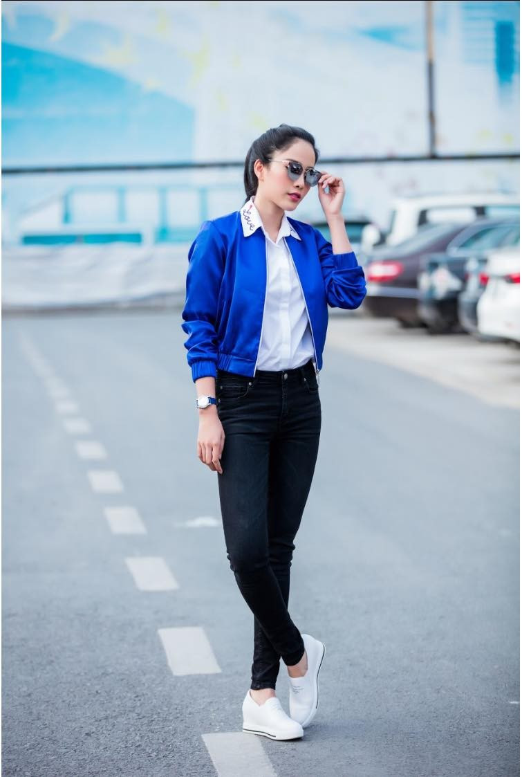Diệp Lâm Anh tự hào với thân hình không mỡ thừa. Bà xã diễn viên Chi Bảo chụp ảnh dưới tán lá vàng cuối mùa thu ở Hàn Quốc.