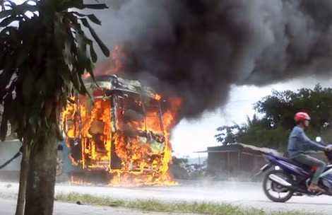| Chiếc xe khách mang BKS 27B - 001.30 do tài xế Đặng Văn Thông (SN 1965, trú tại phường Nam Thanh, TP Điện Biên) điều khiển, đang lưu thông theo hướng Bắc - Nam tuyến Điện Biên – Vinh, thì bất ngờ phát cháy từ phía máy ở cuối xe. |