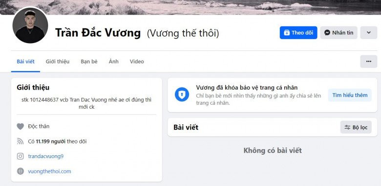 Hiện tại tài khoản Facebook của Vương "Thế Thôi" đã khóa.