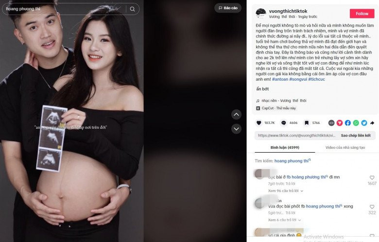 Thế nhưng cách đây một ngày, hot tiktoker Vương “Thế Thôi” bất ngờ thông báo đã đường ai nấy đi với vợ. “Để mọi người không tò mò và hỏi nữa và mình không muốn làm người đàn ông trốn tránh trách nhiệm, mình và vợ mình đã chính thức đường ai nấy đi. Lý do lỗi sai tất cả thuộc về mình. Tuổi trẻ ham chơi buông thả vợ mình đã đạt đến giới hạn và không thể tha thứ cho mình nữa nên hai đứa dẫn đến quyết định chia tay.