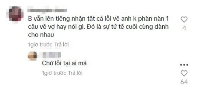 “Vẫn lên tiếng nhận tất cả lỗi về anh, không phàn nàn một câu về vợ hay nói gì. Đó là sự tử tế cuối cùng dành cho nhau”, một cư dân mạng bình luận.