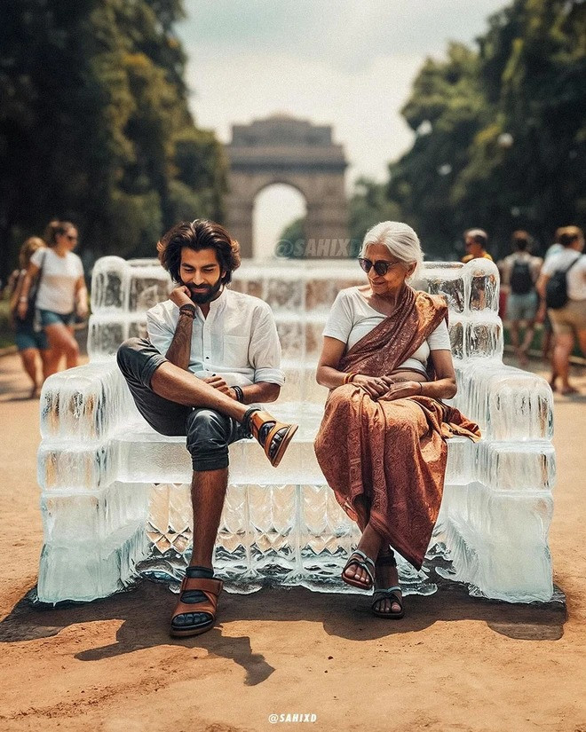 Để mô tả cái nóng kinh hoàng trong những ngày qua, Sahid SK - một tài khoản Instagram chuyên sáng tạo các hình ảnh bằng công nghệ trí tuệ nhân tạo AI tại Ấn Độ đã đăng tải bộ ảnh với dòng mô tả "Mùa hè ở vũ trụ song song".