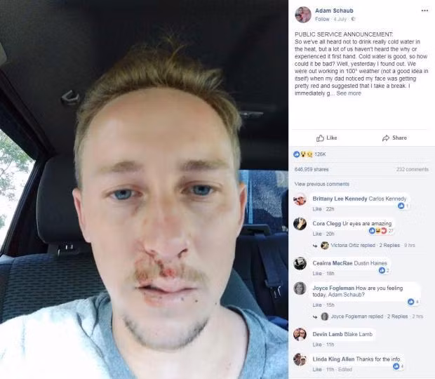 Từ trường hợp của Adam, bác sĩ khuyến cáo, giữa trời nắng nóng, nếu uống nước đá chỉ nên uống từng ngụm, còn cách bù nước tốt nhất là uống nước ở nhiệt độ thường.