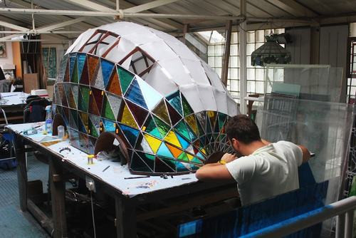 | Những mảnh thủy tinh thủ công tỉ mỉ đã được kết thành một tấm kính phía trên tạo nên một bức tranh màu đẹp mắt. |