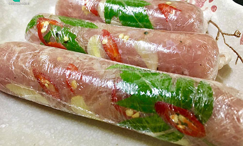 - Vậy là phần nem đã hoàn thành, lúc này bạn có thể cho nem vào hộp đựng thực phẩm dàn đều mặt, rải thêm ớt và tỏi thái lát lên trên rồi ủ nem trong 5 ngày sẽ ăn được. Hoặc để tiện hơn thì bạn gói nem bằng màng bọc thực phẩm thành từng chiếc nhỏ, nhớ gài thêm vào mỗi chiếc nem mấy lát ớt và tỏi, thêm chút lá đinh lăng hoặc lá ổi (tùy khẩu vị), sau đó đem ủ nem trong 3 – 5 ngày là có thể ăn được.