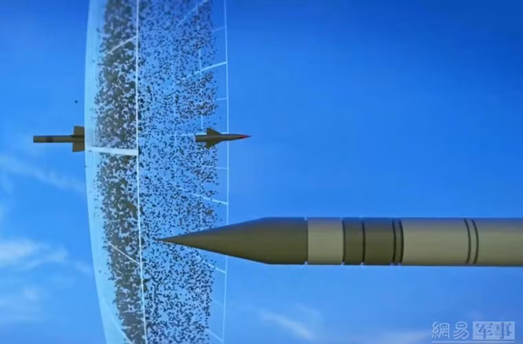 Ảnh đồ họa đường kính mảnh vỡ đầu nổ tên lửa có thể tạo ra đánh chặn đạn của đối phương.