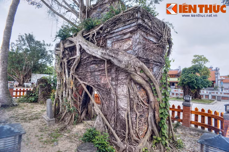 (Kiến Thức) - Cánh cổng cổ xưa của chùa Hoằng Phúc có tuổi đời hàng trăm năm, gây ấn tượng đặc biệt với một cây si lớn mọc trùm lên trên.