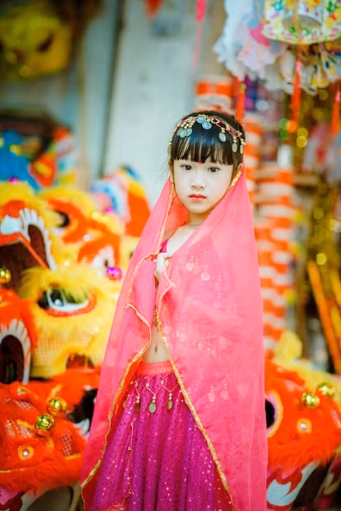 Chùm ảnh về mẫu nhí Hà thành Đoàn Gia Hân (sinh năm 2009) giữa phố Hàng Mã gây ấn tượng với vẻ đẹp ngây thơ, trong sáng. Trong bộ ảnh, Gia Hân hóa thành một cô bé với trang phục Ấn Độ, lấy cảm hứng từ bộ phim truyền hình dài tập Cô dâu 8 tuổi.