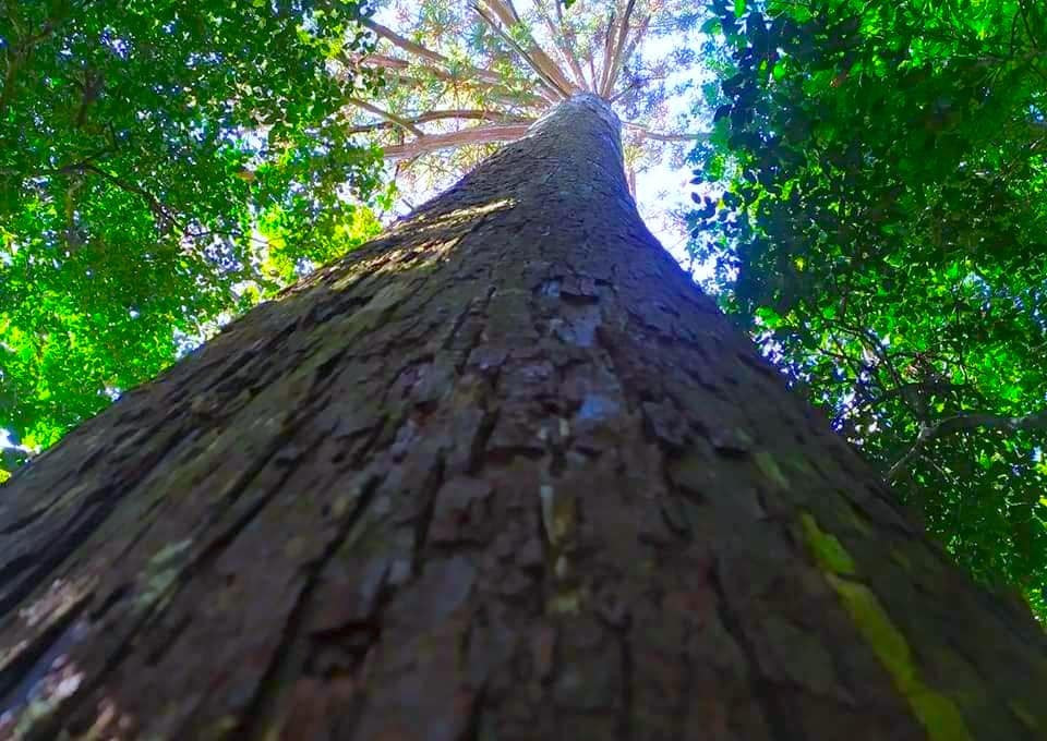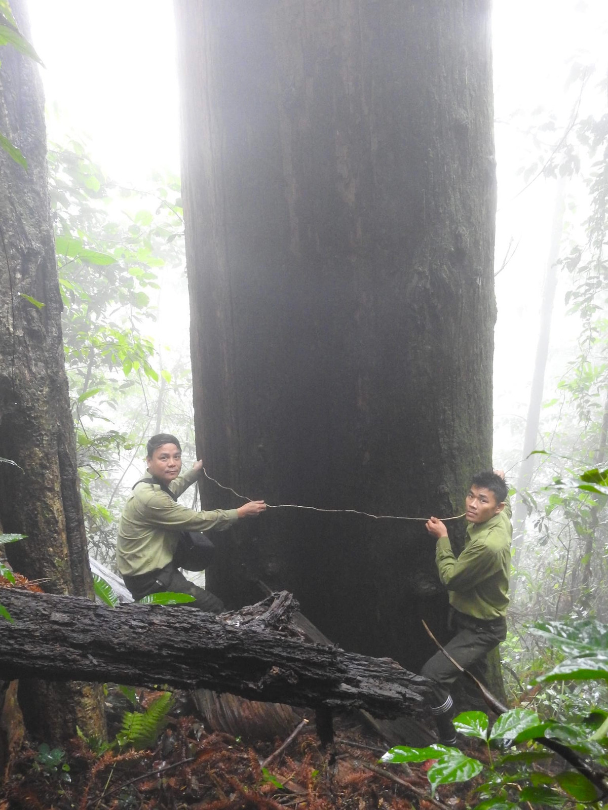 Con người bé nhỏ dưới gốc cây Sa mu dầu "khổng lồ".
