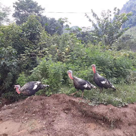 Đàn gà lai xuất xứ từ Lào hơn 20 con, nhìn đẹp như công của anh Mùa A Phềnh (bản Mới, xã Hồng Ngài, huyện Bắc Yên, Sơn La). Đàn gà lai của anh Phềnh khiến ai thấy cũng mê tít bởi màu lông sặc sỡ của chúng.