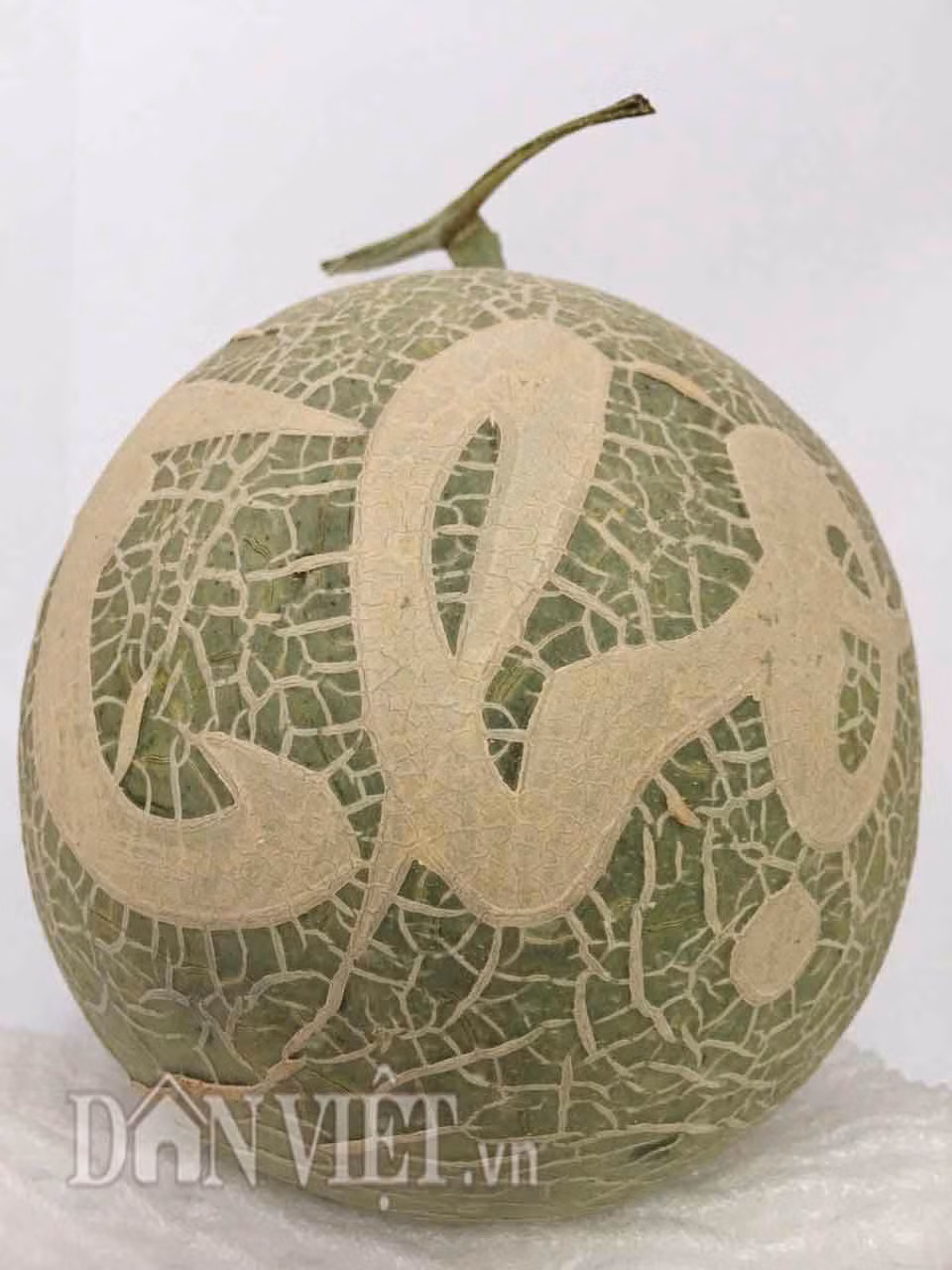 | Anh Tiền in chữ trên trái dưa lưới có nguồn gốc từ Israel. |