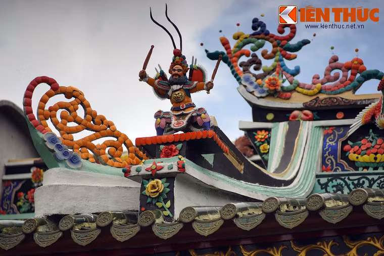 Họa tiết sành sứ trang trí trên mái được thể hiện rất sinh động.