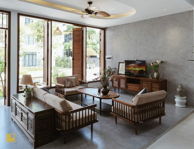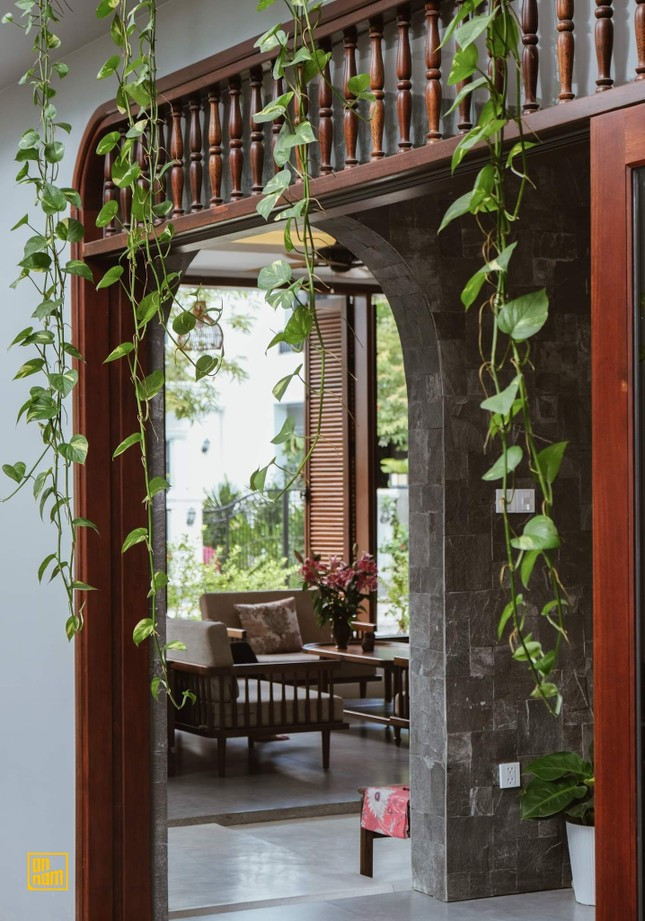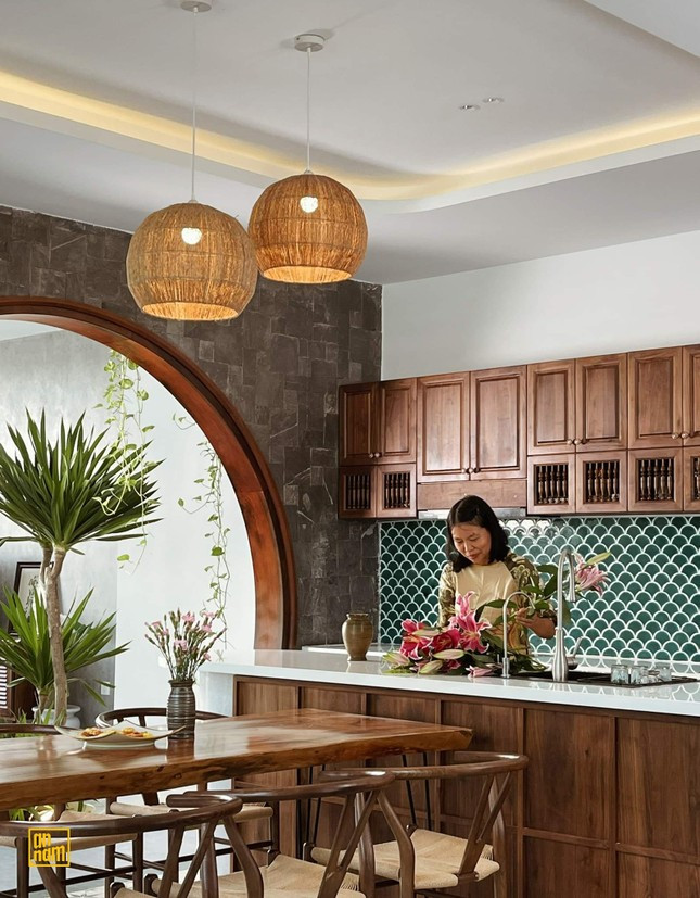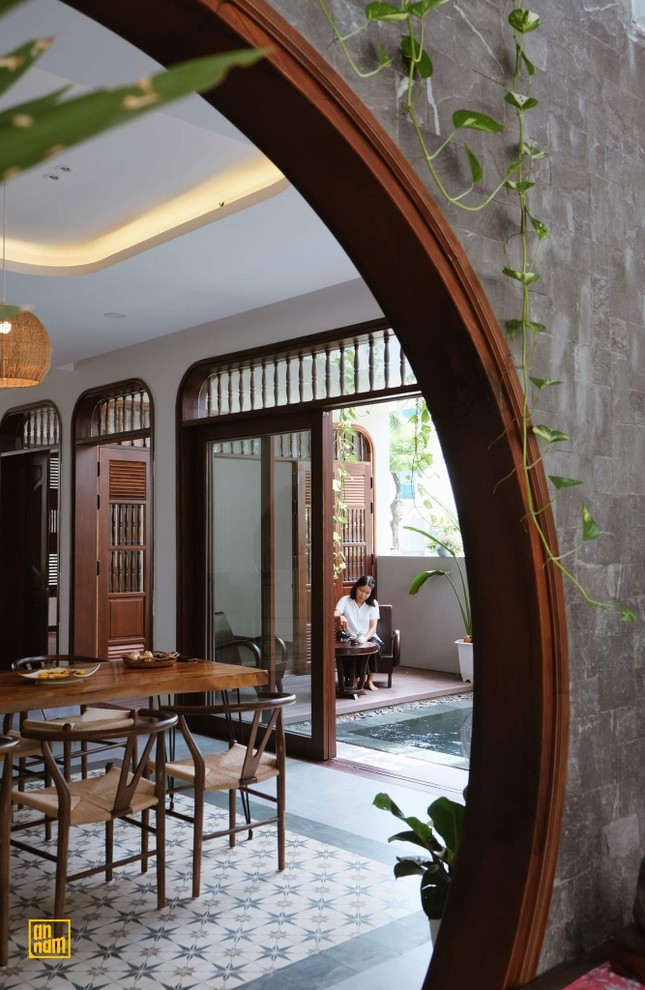 Nội thất của căn nhà được thiết kế theo phong cách indochine đan xen với vật dụng trang trí thô mộc như gỗ tự nhiên, gạch bông,.. mang đến sự thanh lịch, sang trọng nhưng vẫn nhã nhặn, gần gũi và ấm cúng.