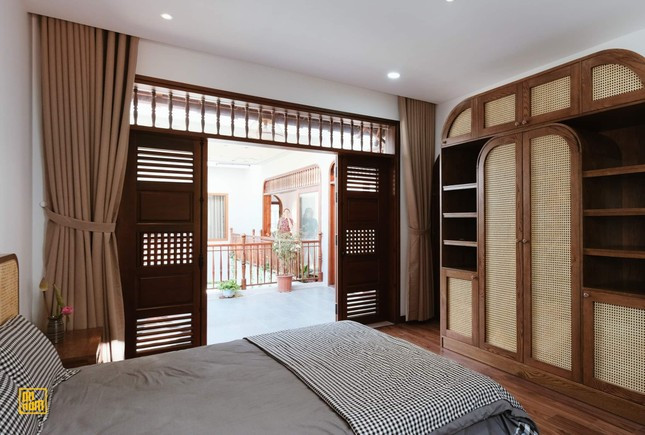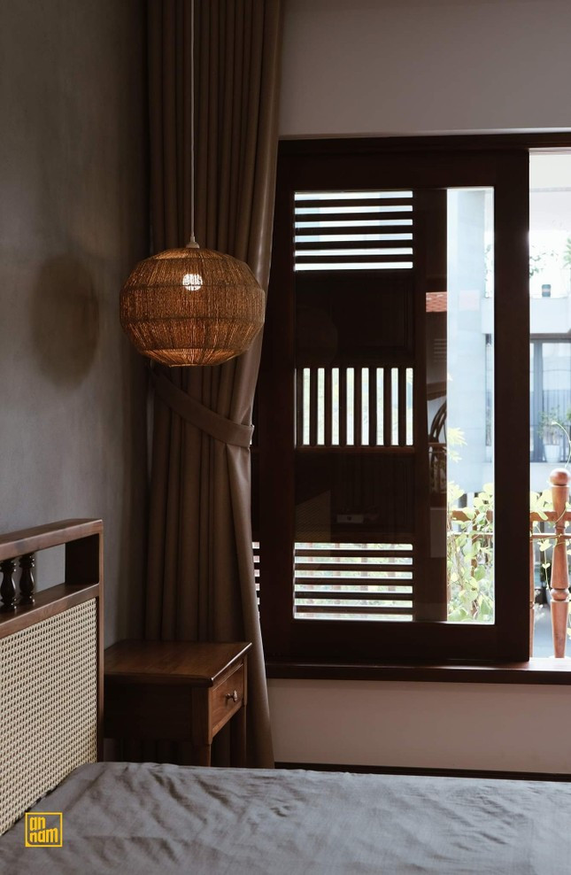 Các khối công trình được sắp xếp chồng chéo để biến ánh sáng vào nhà trở thành ánh sáng gián tiếp và gió tự nhiên có lối vào - ra. Sự chuyển tiếp không gian nhiều chiều từ trong ra ngoài và từ trên xuống dưới, sự liên kết giữa không gian chung và riêng được đội ngũ kiến trúc sư nhấn mạnh bằng hệ cửa gỗ lá sách. Điều này không chỉ có tác dụng phân chia riêng tư cho từng khu vực mà còn có tác dụng đối lưu không khí, không để cho không khí ở trạng thái tĩnh.