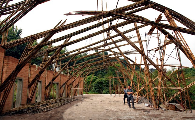 Giữa cảnh quan non xanh, nhà cộng đồng trở thành điểm nhấn.