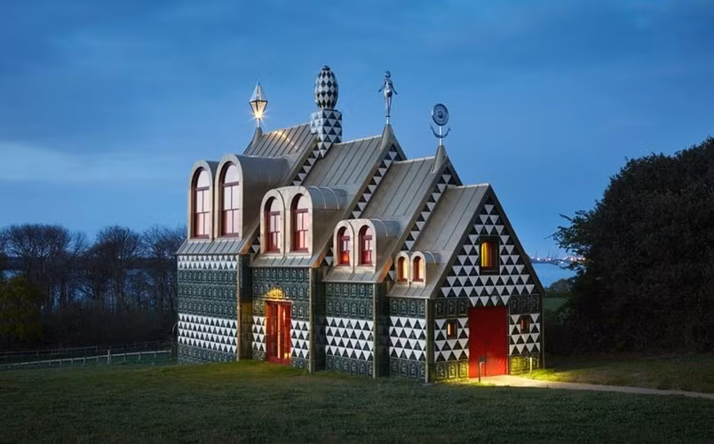 Nhìn ra sông Stour ở Wrabness, thành phố Canterbury, Anh Quốc, ngôi nhà đẹp Essex được thiết kế như một ngôi đền.