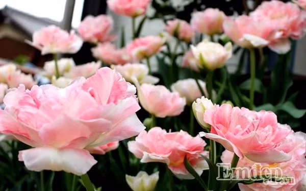 Chị Trần Quỳnh trồng nhiều nhất là hoa tulip, mùa xuân khi trời bớt lạnh, tuyết ngừng rơi, nắng ấm bắt đầu lan tỏa khắp đất nước Nhật Bản cũng là lúc loài hoa mà chị yêu thích nở rực rỡ, làm duyên cho lối vào nhà.