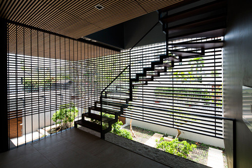 Nằm ở khu vực thường xuyên ngập lụt ở TP.HCM, ngôi nhà hiện đại được xây dựng với phương pháp đặc biệt để tránh nước tràn vào khu vực sinh hoạt.