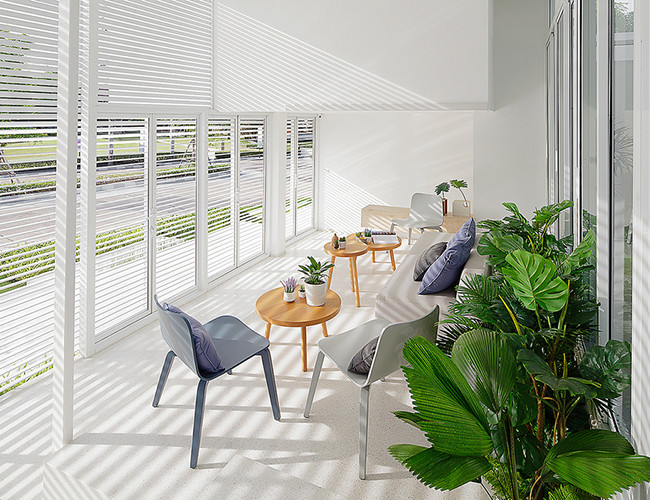 Sử dụng hệ thống lam thay tường và cửa giúp gia chủ dễ dàng điều chỉnh lượng ánh sáng vào nhà, đồng thời tạo thành nét thẩm mỹ đặc biệt cho không gian sống.