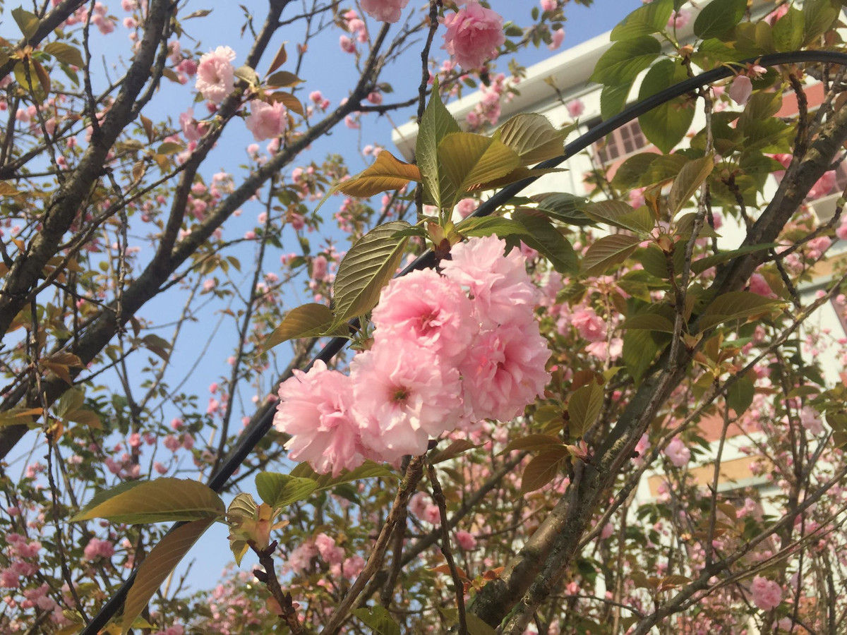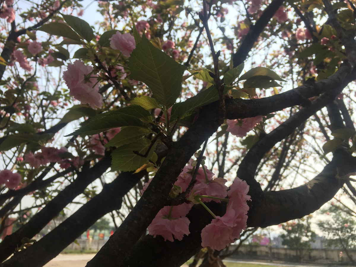 Hoa Anh đào khoe sắc dưới ánh nắng ban mai.