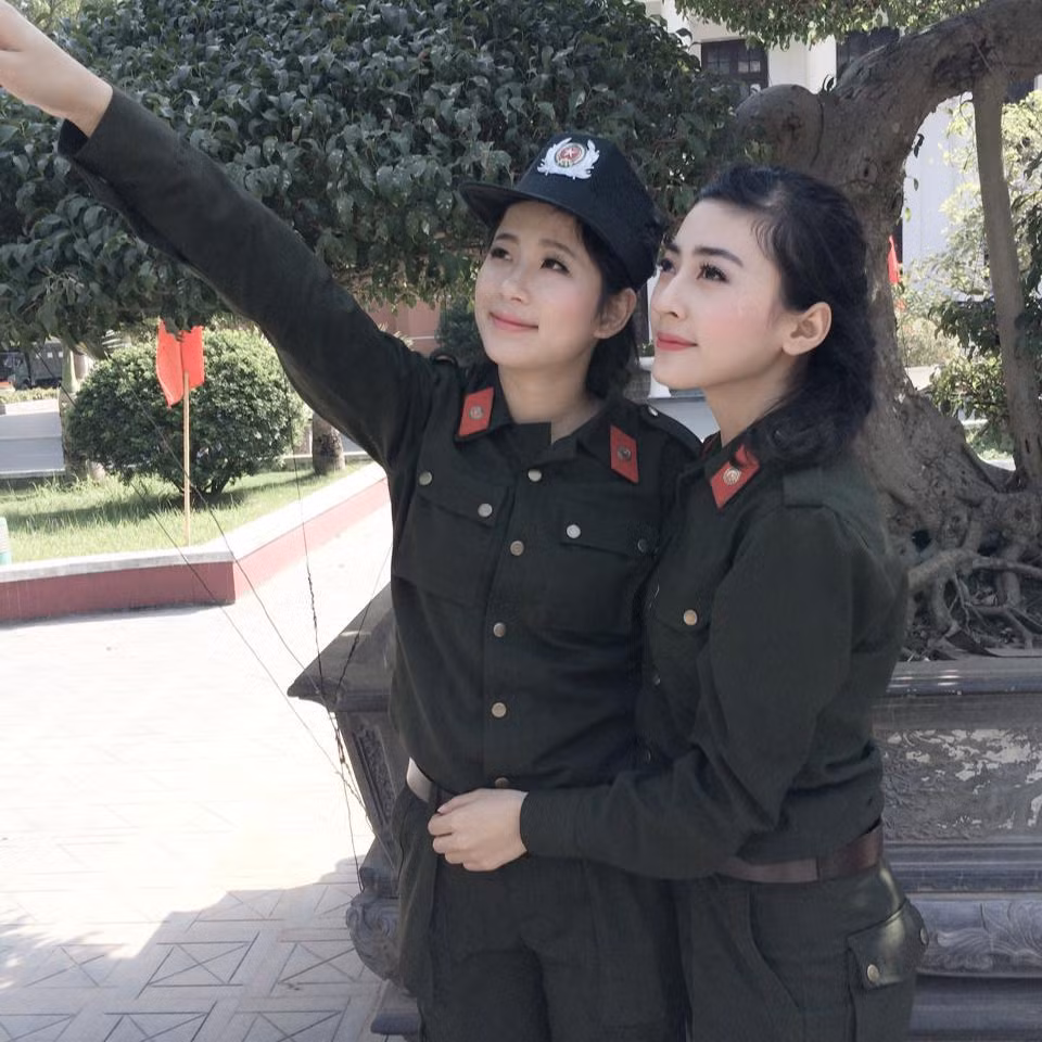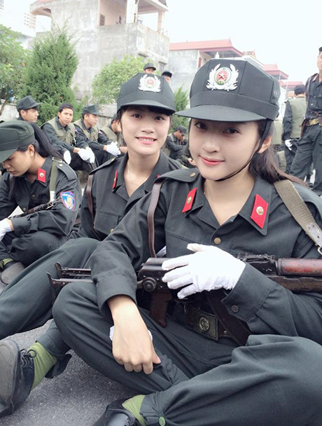 Ngất ngây nhan sắc hai cô gái vận quân phục CSCĐ